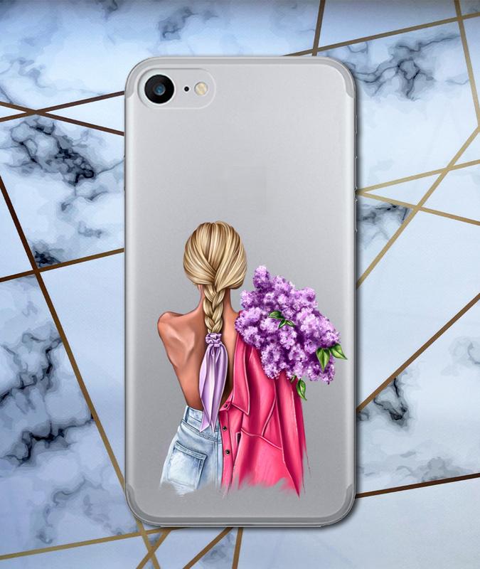 Прозрачный чехол для iphone se 2020 :: девушка с сиренью (принт 7)