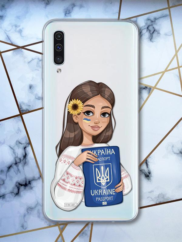 Прозрачный чехол для samsung galaxy а50 (2019) а505 :: девушка с паспортом (принт 12)