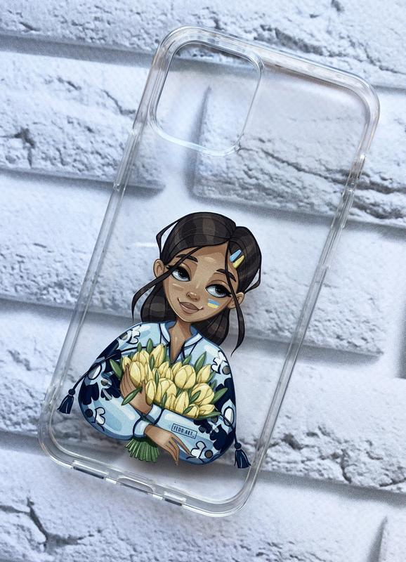 Прозрачный чехол на iphone 12 / 12 pro :: девушка с тюльпанами (принт 22)