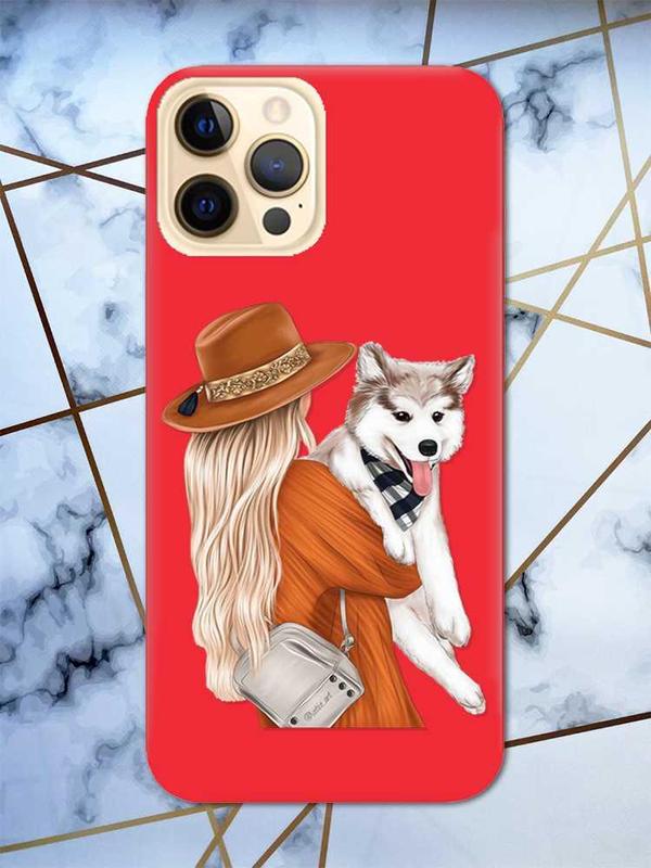 Матовый чехол с красными боками на apple iphone 12 pro max :: девушка с собачкой (принт 11...
