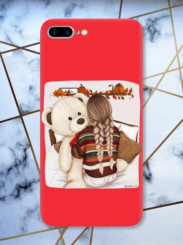 Матовый чехол с красными боками на apple iphone 7 plus/8 plus :: девочка с мишкой (принт 1...