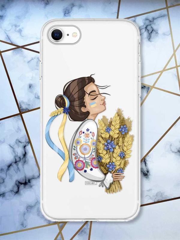 Прозрачный чехол на iphone se 2020 :: украинка с колосками (принт 172)