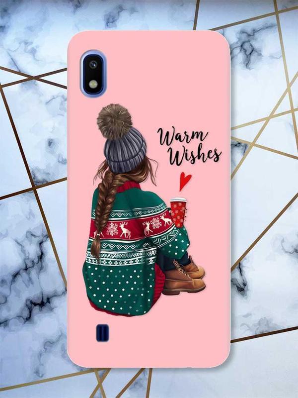 Матовый розовый чехол на samsung galaxy a10 (2019) a105 :: девушка с кофе (принт 136)
