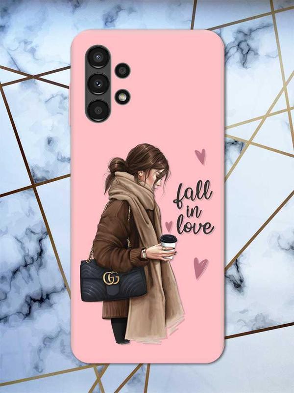 Матовый чехол с розовыми боками на samsung a13 4g :: девушка с кофе (принт 112)