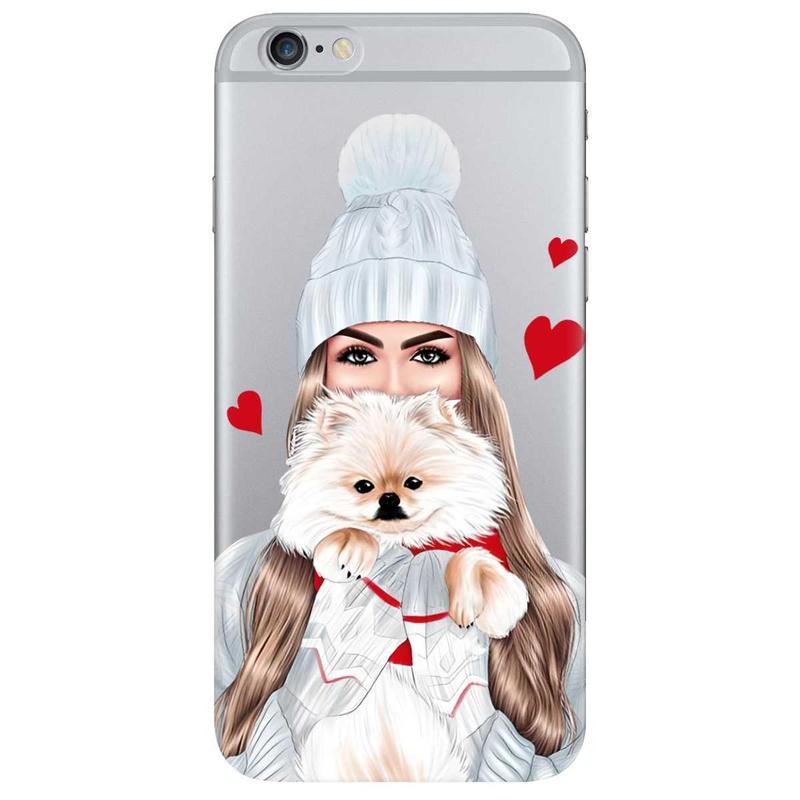 Прозрачный чехол для iphone 6 / 6s девушка с собачкой (принт 142)