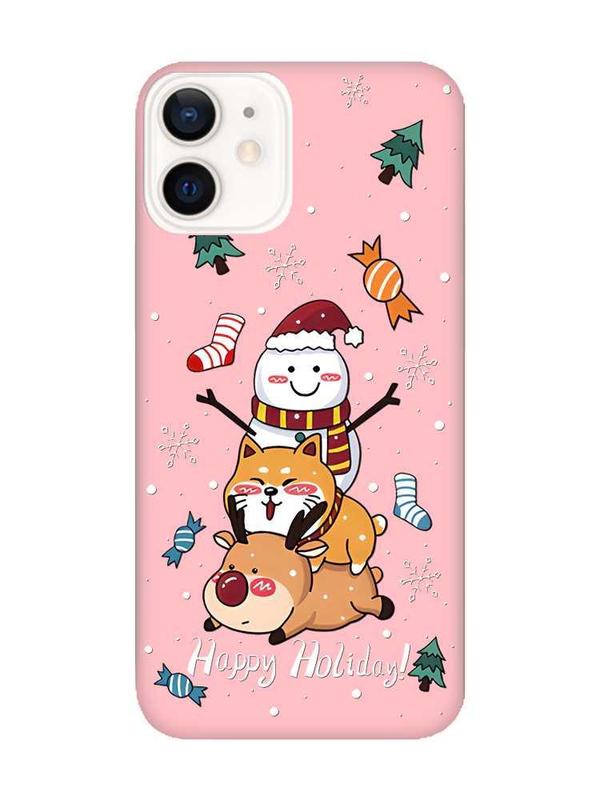 Матовый розовый чехол на apple iphone 12 / 12 pro (6.1) зимние развлечения (принт 153)