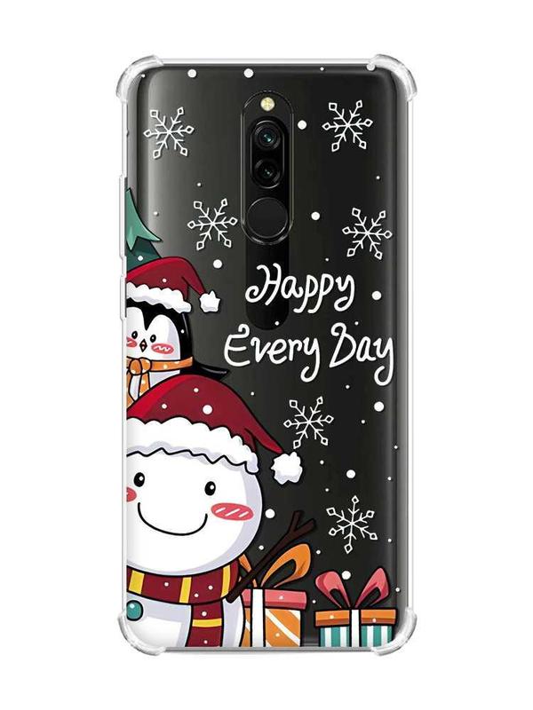 Чехол с утолщенными углами на xiaomi redmi 8 снеговик и пингвин (принт 156)