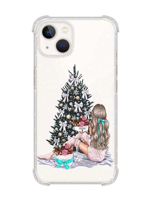 Чехол с утолщёнными углами на iphone 14 plus :: девушка возле ёлки (принт 139)