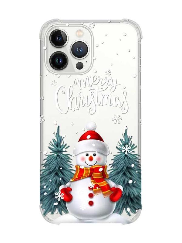 Прозорий чохол із потовщеними кутами на iphone 14 pro сніговик (принт 152)