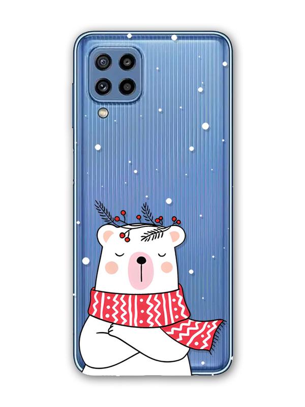 Прозрачный чехол на samsung galaxy m32 / m22 / a22 4g медведь в шарфе (принт 147)