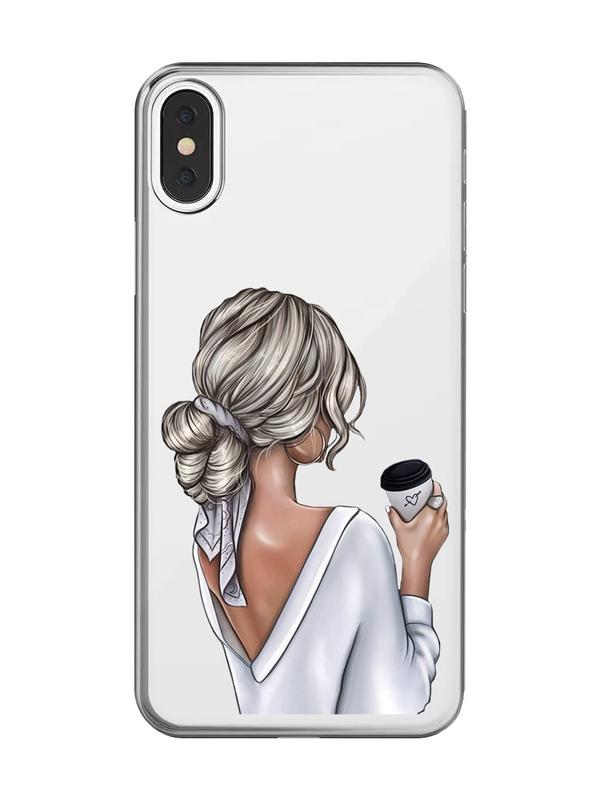 Прозрачный чехол на iphone x / xs девушка с латте (принт 227)