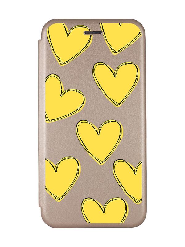Чехол-книжка с рисунком для xiaomi redmi 9 золотистый :: сердечка желтые (принт 259)
