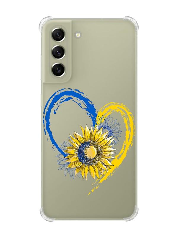 Чехол с утолщёнными углами для samsung s21 fe :: сердце с подсолнухом. украина (принт 260)