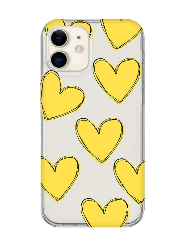 Прозрачный чехол на iphone 12 mini :: сердечка желтые (принт 259)