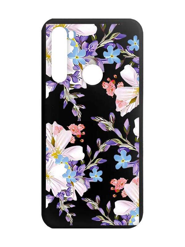 Матовый чехол с черными боками на xiaomi redmi note 8 :: цветочный рисунок (принт 272)