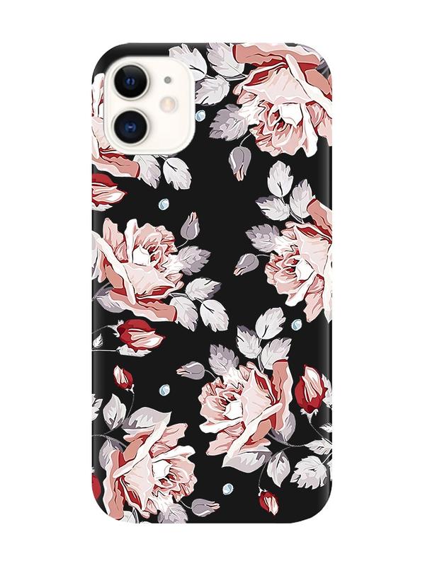 Матовый чехол с черными боками на apple iphone 11 (6.1) :: фон розы (принт 273)