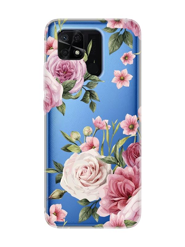 Прозрачный чехол на xiaomi redmi 10c :: розовые цветы (принт 287)