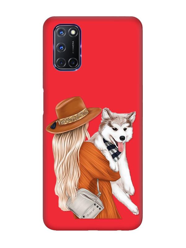 Матовый чехол с красными боками на oppo a52/ a72/ a92 :: девушка с собачкой (принт 115)
