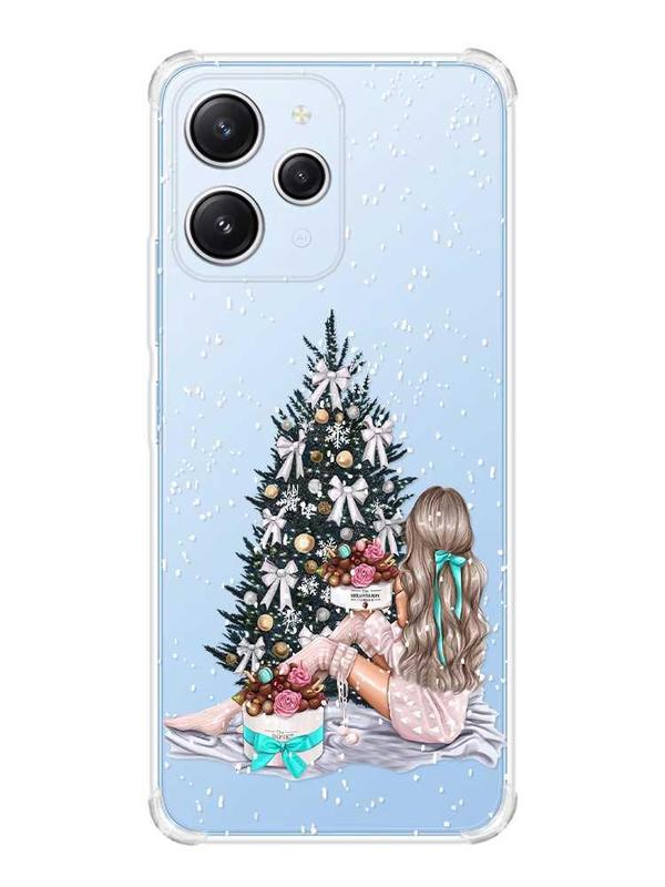 Чехол с утолщёнными углами на xiaomi redmi 12 :: девушка возле ёлки (принт 139)