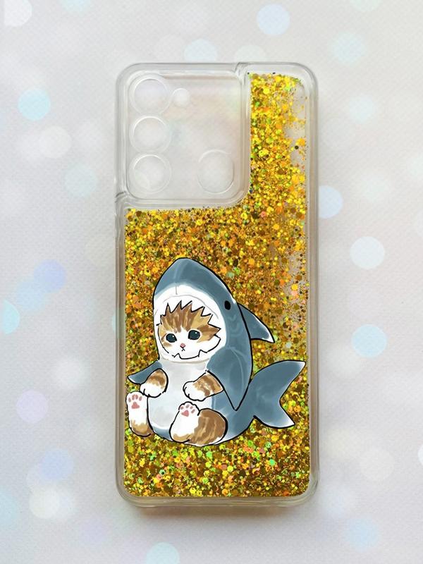 Чехол с плавающими блестками на tecno spark go 2022 золотой :: котёнок (принт 120)