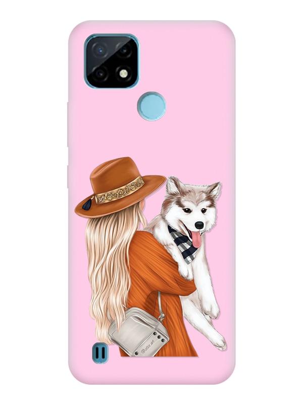 Матовый чехол с розовыми боками на realme c21y :: девушка с собачкой (принт 115)