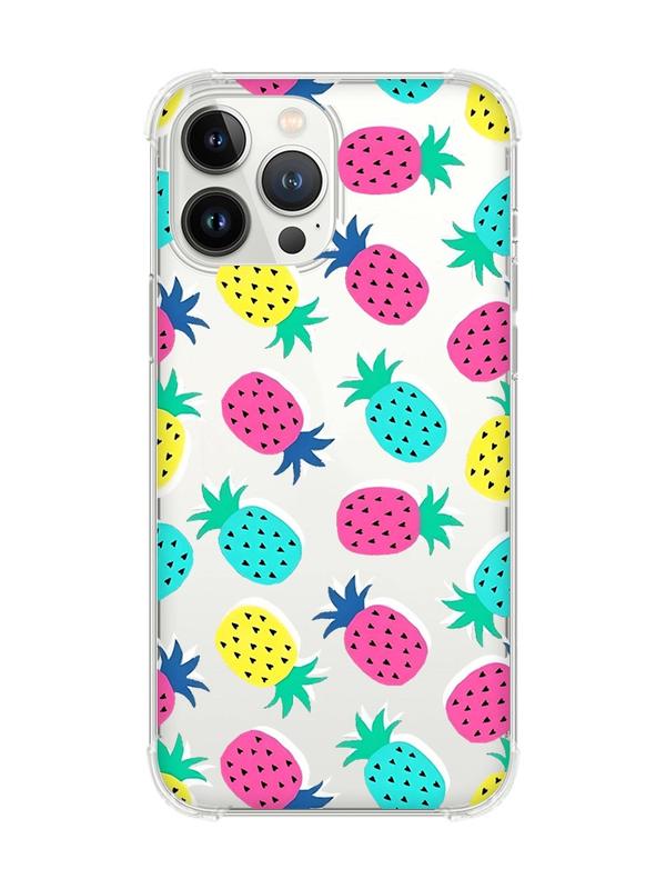 Чехол с утолщёнными углами на iphone 14 pro max :: разноцветные ананасы (принт 346)