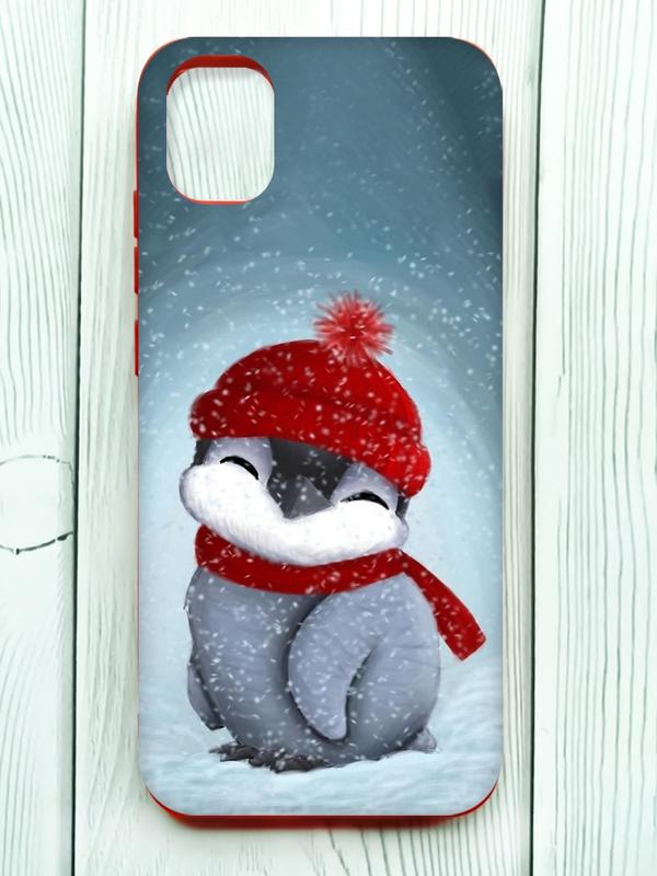 Чехол с красными боками на samsung galaxy a04e / a042 :: пингвинёнок в шапочке (принт 157)