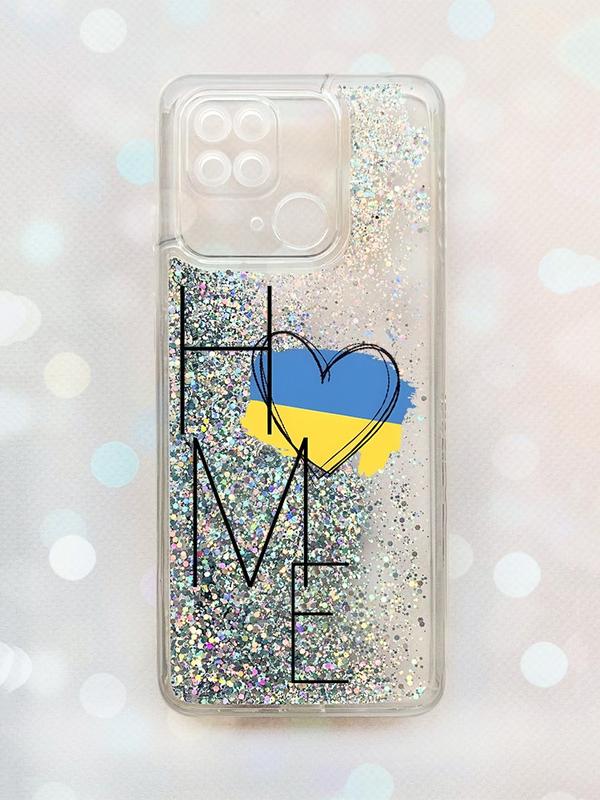 Чехол с плавающими блестками на xiaomi redmi 10c серебряный :: дом украина (принт 353)