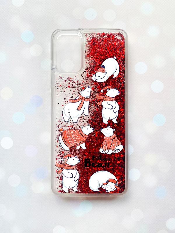 Чехол с плавающими блестками на samsung galaxy a03s (a037) красный :: мишки (принт 145)