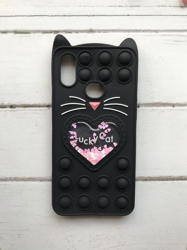 Чехол попит антистресс поп-ит pop it для samsung galaxy а10s / a107 котик с сердечком чёрн...