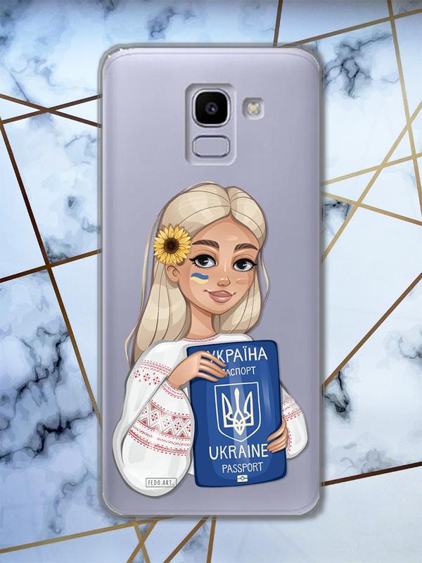 Прозрачный чехол для samsung galaxy j6 (2018) j600f :: девушка с паспортом (принт 13)
