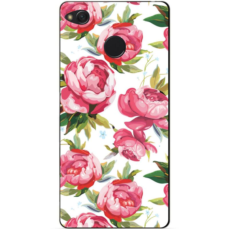 Силиконовый чехол бампер для xiaomi redmi 4x с рисунком пионы