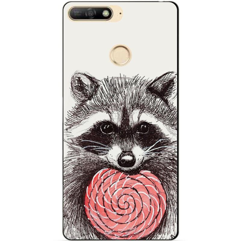 Силиконовый бампер чехол для huawei y6 prime 2018 с рисунком енот