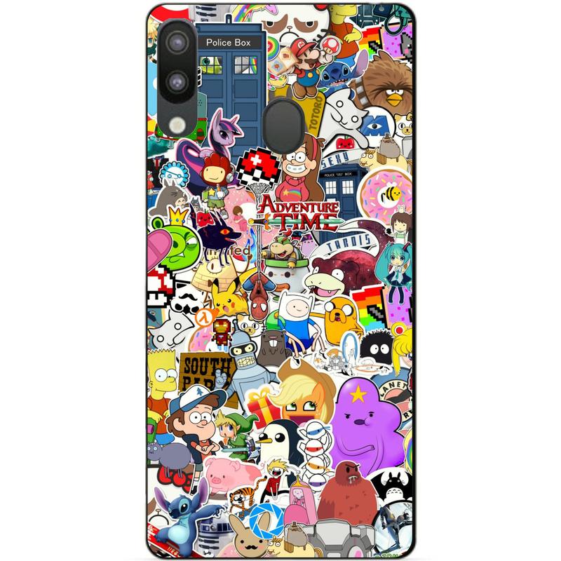 Силиконовый бампер чехол для samsung m20 2019 galaxy m205f с рисунком стикеры мультяшки