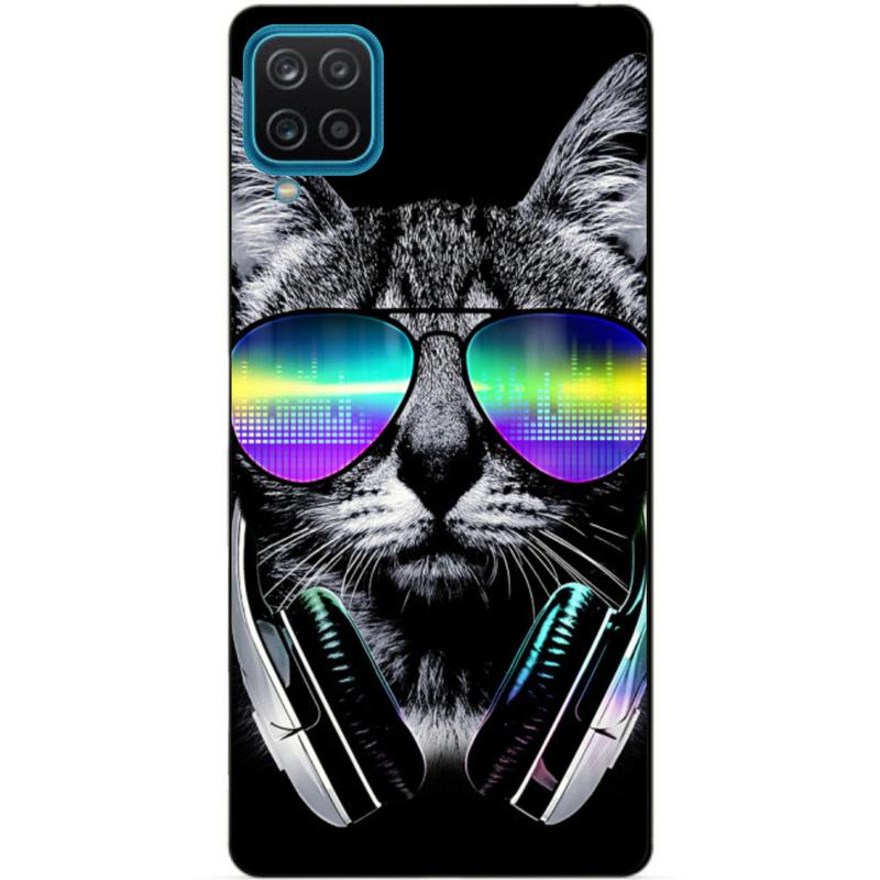 Силиконовый бампер чехол для samsung a12 с рисунком музыкальный кот
