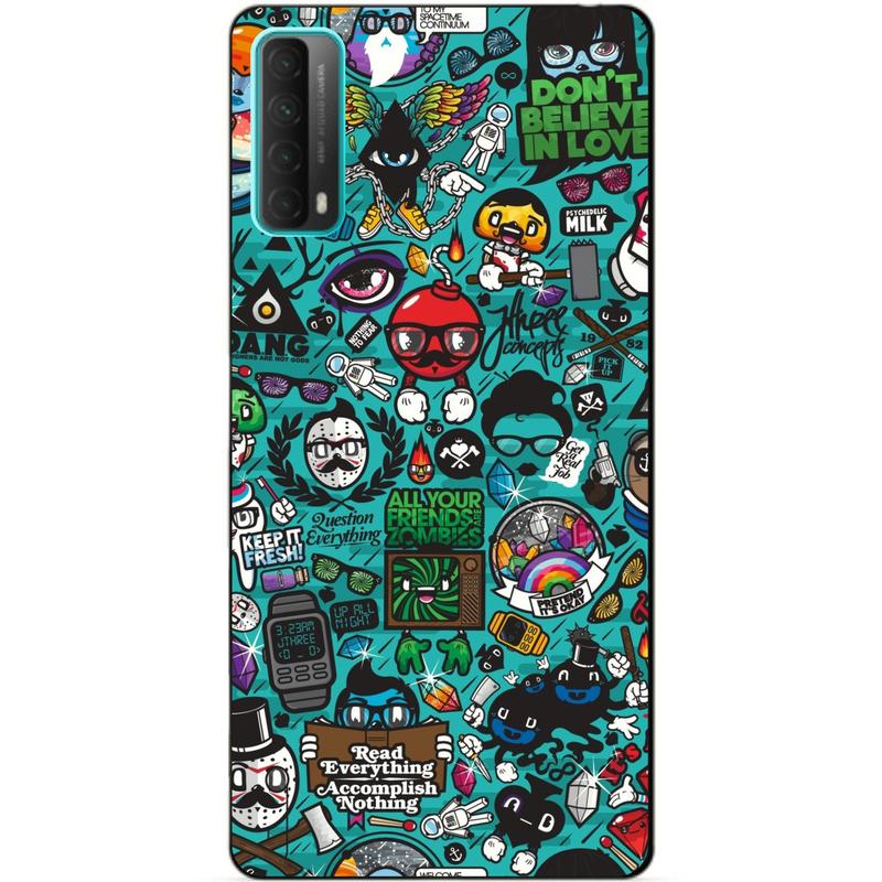 Силиконовый бампер чехол для huawei p smart 2021 с рисунком стикеры