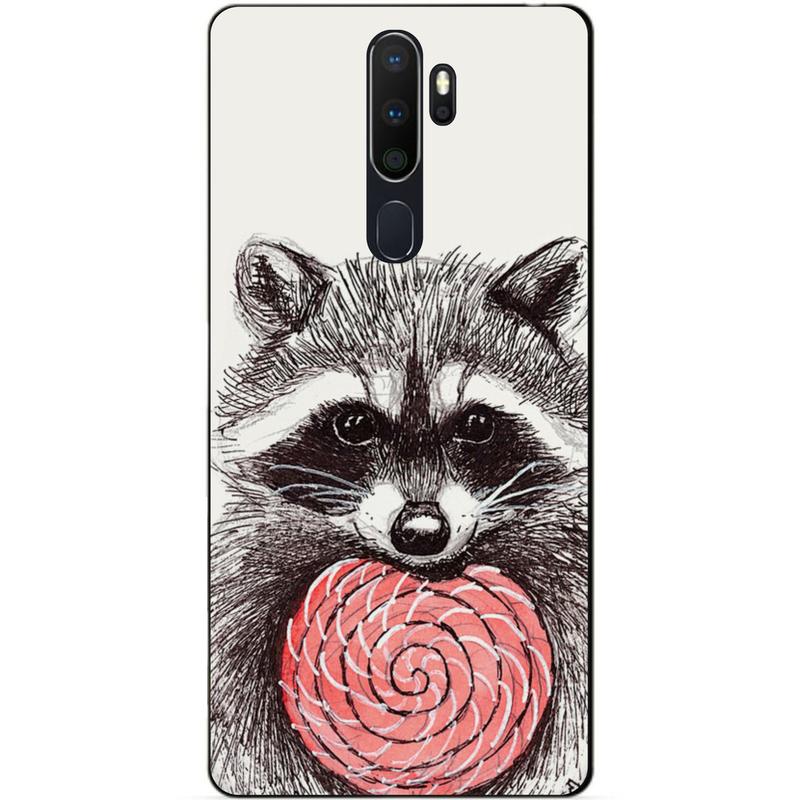 Силиконовый бампер чехол для oppo a5 2020 с рисунком енот