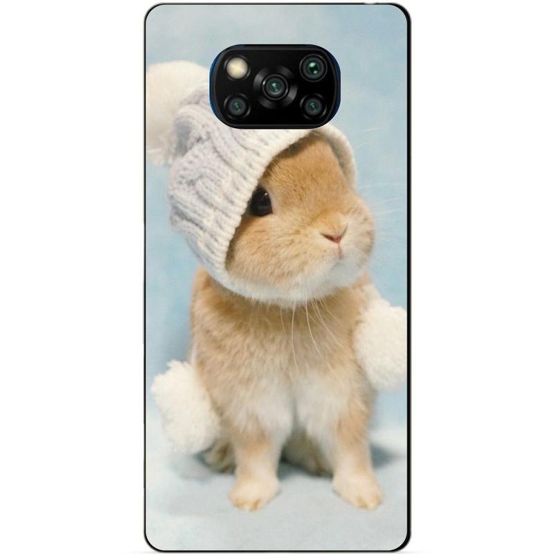 Силиконовый бампер чехол для xiaomi poco x3 с рисунком зайчик в шапке