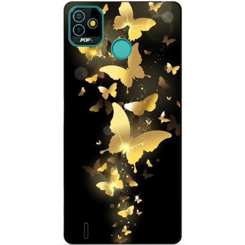 Силиконовый бампер чехол для tecno pop 5 (bd2) с рисунком золотые бабочки