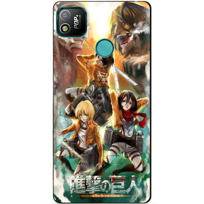 Силиконовый бампер чехол для tecno pop 4 с рисунком атака на титанов