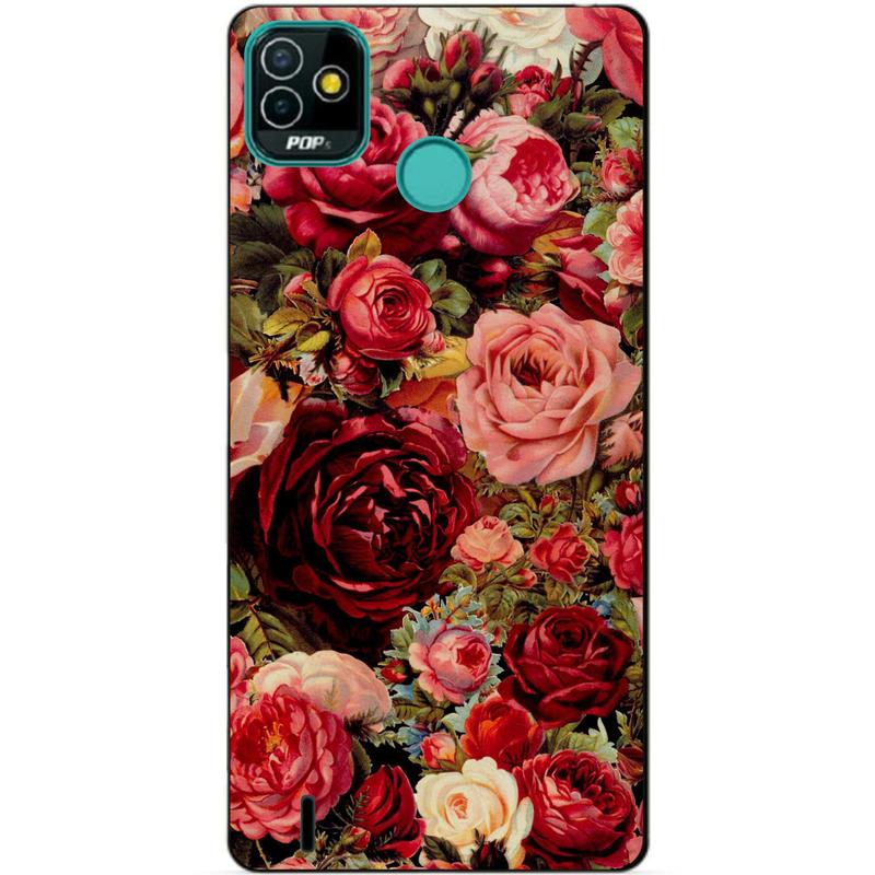 Силиконовый бампер чехол для tecno pop 5 (bd2) с рисунком красные розы