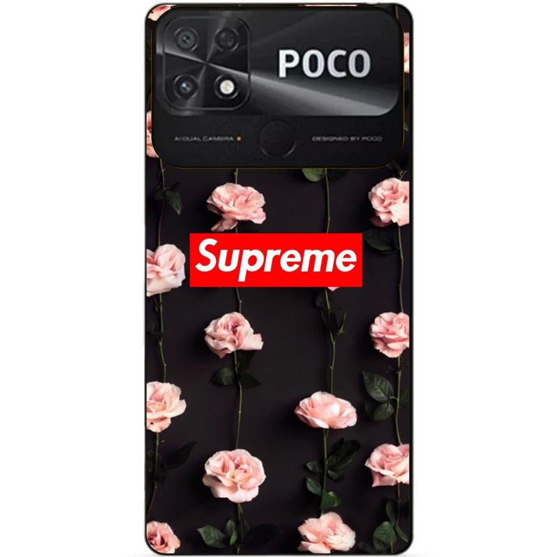 Силиконовый бампер чехол для xiaomi poco c40 с рисунком суприм на розах