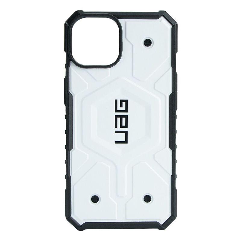 Чохол UAG Pathfinder with MagSafe - це надміцна і водночас надзвичайно легка панель-накладка, розроблена для посиленого захисту корпусу смартфона. Аксесуар виділяється привабливим зовнішнім виглядом, практичністю та тривалим терміном служби. Оригінальна форма його еластичного фіксуючого бампера та рельєфна панель забезпечать користувачеві приємні тактильні відчуття та ефективне поглинання сили ударів при падіннях. Комфорт у повсякденну експлуатацію гаджета внесе невелика петелька для шнурка, розташована на одному із скошених улов бампера, точні вирізи для роз'ємів та основної камери. Композитна конструкція чохла виготовлена з комбінації ударостійкого полікарбонату та термопластичного поліуретану, завдяки чому він має достатню жорсткість та еластичність для щільного облягання пристрою та його захисту від більшості можливих пошкоджень, навіть при падіннях з висоти близько 5 метрів.