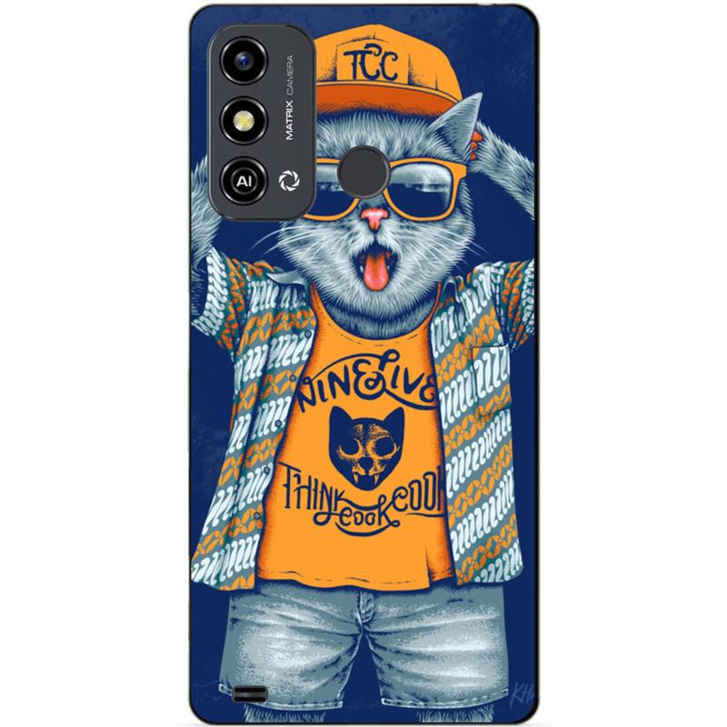 Силиконовый чехол бампер для zte blade a53 с рисунком кот в кепке