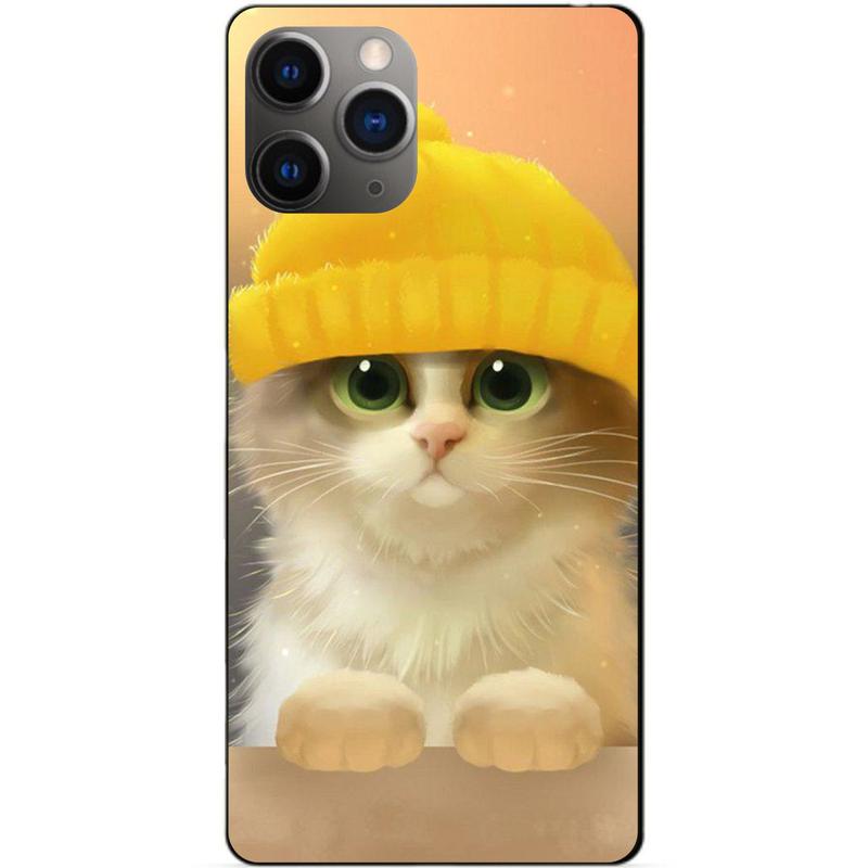 Силиконовый чехол бампер для iphone 11 pro max с рисунком котик в шапке