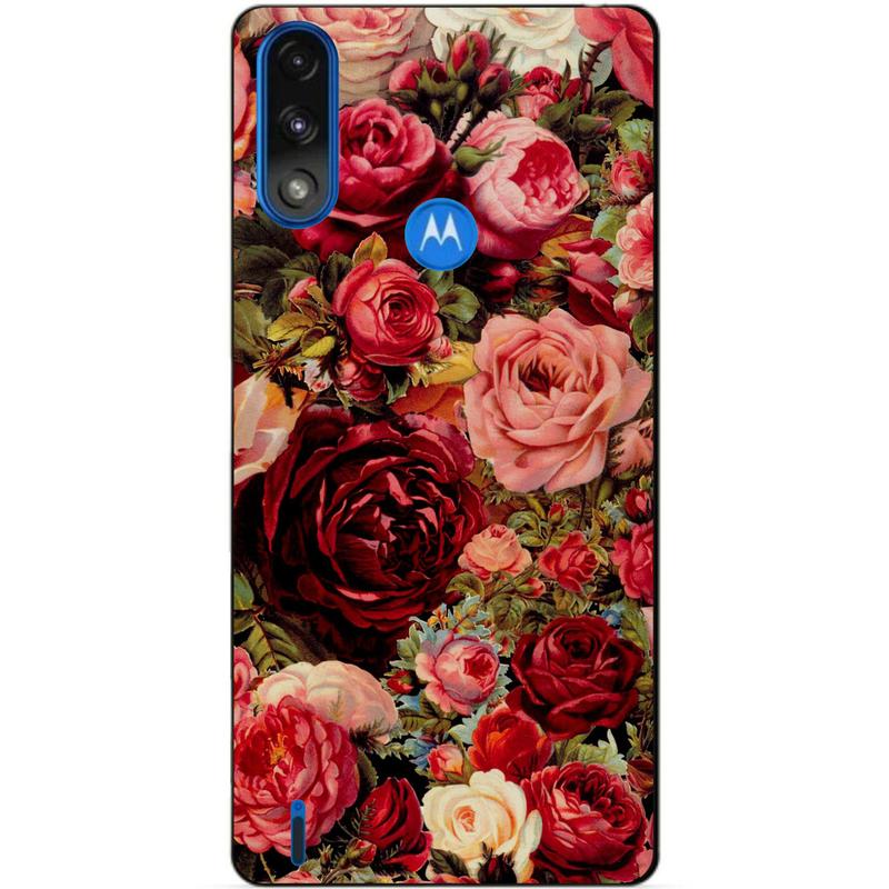 Силиконовый чехол бампер для motorola moto e7 power с рисунком красные розы цветы