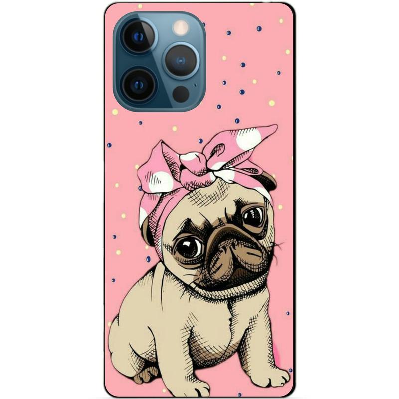 Силиконовый чехол бампер для iphone 13 pro max с рисунком мопс