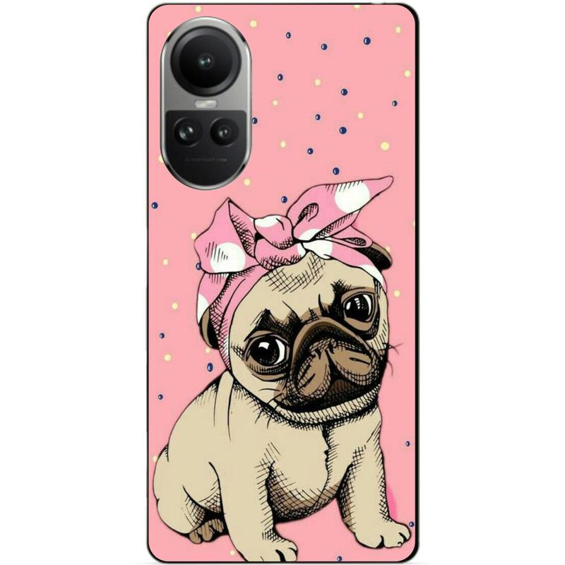Силиконовый чехол бампер для oppo reno 10 с рисунком мопс
