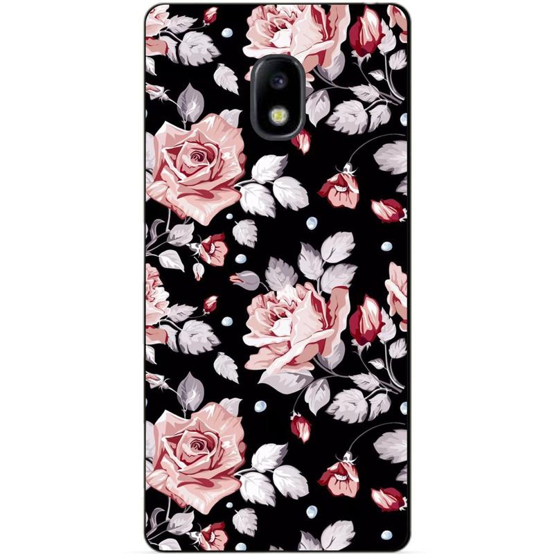 Силиконовый бампер чехол для samsung j730 galaxy j7 2017 года с рисунком розы на черном фо...