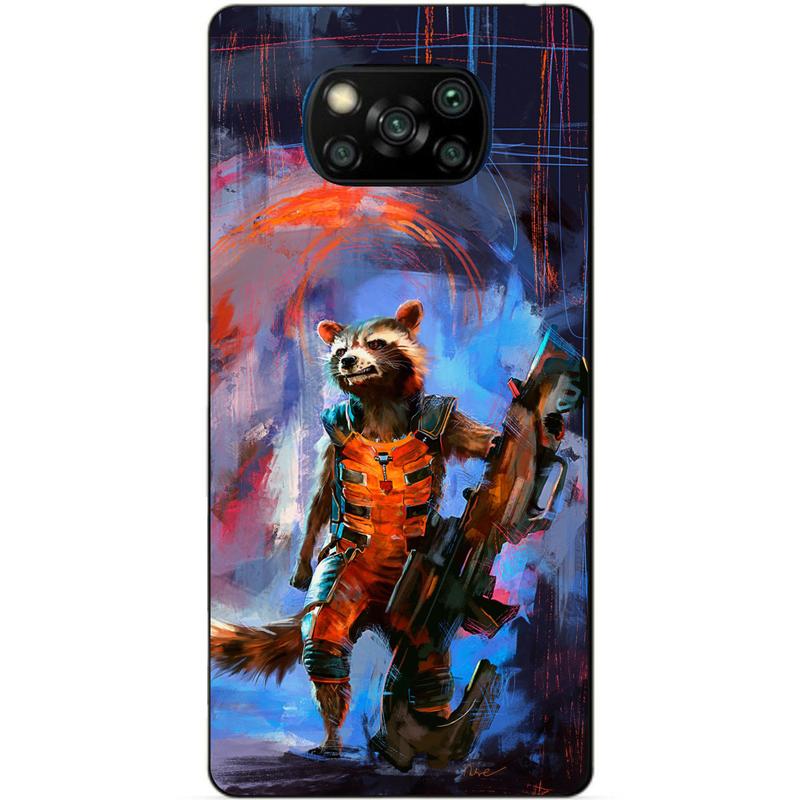 Силиконовый бампер чехол для xiaomi poco x3 с рисунком реактивный енот стражи галактики